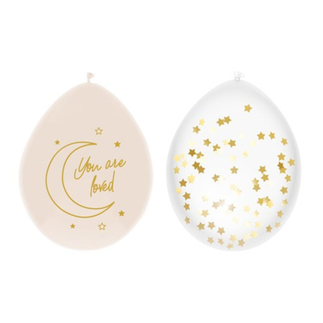 Maak de babyshower of geboortefeest extra bijzonder met deze stijlvolle nude en gouden ballonnen. Dit elegante ballonnensetje past perfect bij een safari, maan & sterren of neutraal babythema. Lees meer.
