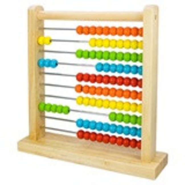 Houten telraam met 100 vrolijk gekleurde kralen. Formaat 30x30 cm. Stevig en veilig omdat de kralen op metalen pennen zitten. Geschikt vanaf 18 maanden.