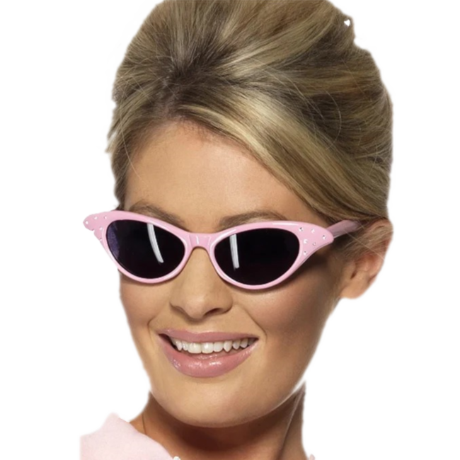 Vrolijke roze zonnebril in vlindermodel, perfect voor een sixties-thema of een retrofeest. Met deze opvallende bril met strass-steentjes straal je direct vintage glamour uit. Lees meer.