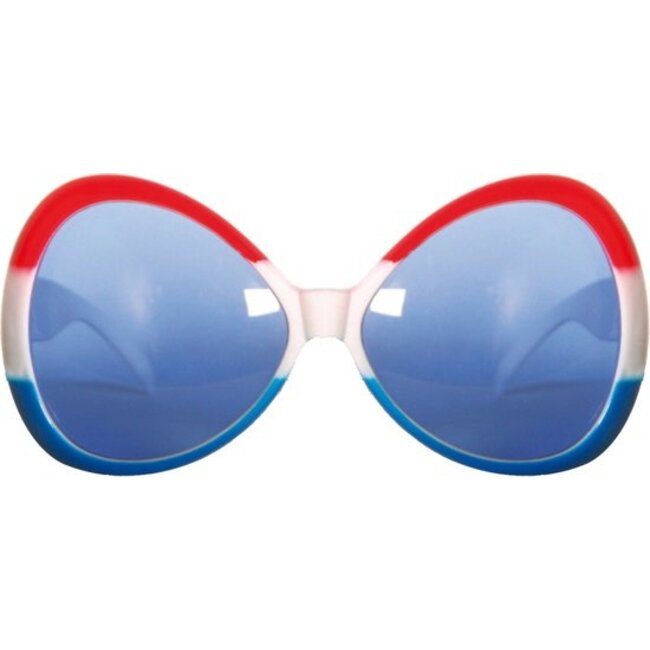 Opvallende rood-wit-blauwe bril met blauwe glazen, perfect voor Koningsdag, sportevenementen of elk moment waarop je in Nederlandse sfeer wilt zijn. Deze grote feestbril zorgt meteen voor een glimlach.