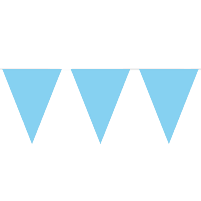 Geef je feest een frisse uitstraling met deze lichtblauwe vlaggenlijn van Folat van 3 meter. Door het kleine formaat is hij perfect voor kraamfeesten, babyshowers of verjaardagen in een intieme setting.