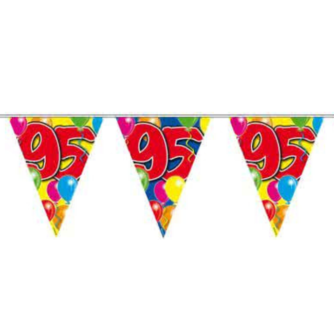 Met deze vlaggenlijn zorg je eenvoudig voor een feestelijke sfeer tijdens een 95e verjaardag. Hang hem binnen of buiten op en laat iedereen zien dat er iets bijzonders gevierd wordt.