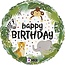 Feestelijke ronde folieballon met junglethema en de tekst “Happy Birthday”. Perfect voor kinderfeestjes of als vrolijke versiering bij een verjaardag. Wordt zonder vulling geleverd.