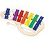 Vrolijke gebogen xylofoon van Goki met 8 metalen klankplaatjes in regenboogkleuren. Dankzij de handige vorm is dit instrument makkelijk vast te houden en perfect voor jonge kinderen die muziek willen ontdekken.
