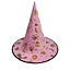De combinatie van roze stof en glanzende gouden figuren geeft deze heksenhoed een feestelijke uitstraling. Versierd met sterren, vleermuizen en heksen in goudprint is het een opvallend accessoire voor elk kostuum. Licht, stevig en gemakkelijk op te bergen voor hergebruik.