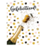 Een feestelijke A4-kaart met een knallende champagnefles en de tekst ‘Gefeliciteerd’. Ideaal voor bijzondere momenten zoals een jubileum, promotie of verjaardag die een extra gouden randje verdient.