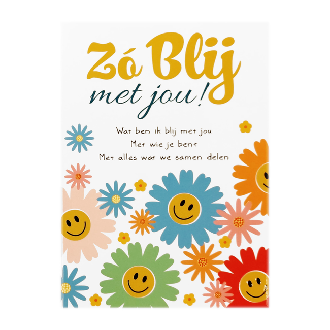 • Voorzijde: ‘Zó blij met jou! Wat ben ik blij met jou, met wie je bent, met alles wat we samen delen.’