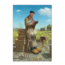 Op de kaart staat een boerenman afgebeeld tijdens zijn werk op het land, leunend tegen een stapel kratten terwijl hij aandachtig een sjekkie pielt. De klompen, de ploeg en het weidse veld roepen meteen een warm, nostalgisch gevoel op. Een mooie kaart om zomaar te sturen of voor een gelegenheid waarbij een nuchtere, oprechte boodschap past.