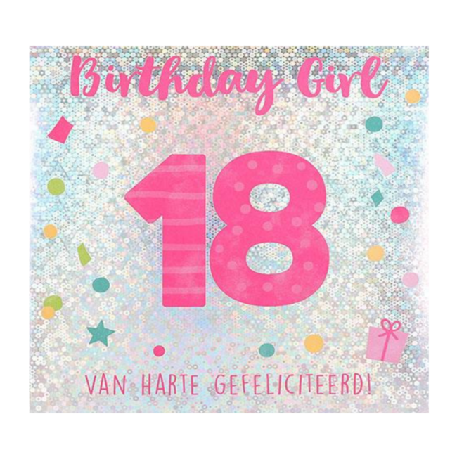 • Voorzijde: ‘Birthday Girl 18 Van harte gefeliciteerd!’
