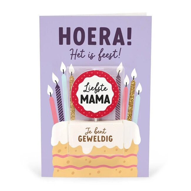 Een liefdevolle wenskaart voor de allerliefste mama, inclusief een vrolijk kaarsje om haar écht in het zonnetje te zetten. Perfect voor haar verjaardag of zomaar, omdat ze het verdient.