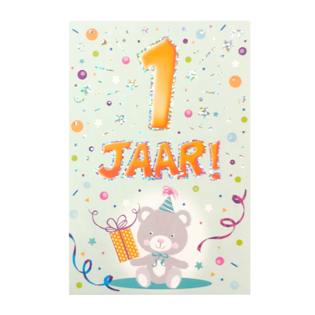 Een vrolijke wenskaart van Artige met gekleurde envelop, speciaal voor een kindje dat 1 jaar! wordt. De feestelijke illustraties en liefdevolle boodschap maken dit een perfect gebaar voor deze bijzondere mijlpaal.