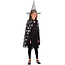 Leuk heksenkostuum van Partychimp, speciaal voor kinderen die van verkleden houden. De set bestaat uit een zwarte cape met zilverkleurige print en een bijpassende heksenhoed. Ideaal voor themafeesten of Halloween.