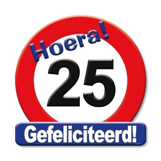 Of iemand nu 25 jaar is geworden of al 25 jaar bij dezelfde werkgever zit, dit huldebord maakt meteen duidelijk dat er iets te vieren valt. Dankzij het duidelijke ontwerp en de feestelijke kleuren valt het direct op voor gasten en voorbijgangers. Hang het aan de voordeur, op het raam of in de feestzaal en laat zien dat deze mijlpaal niet onopgemerkt voorbijgaat. Leuk als verrassing in de ochtend of als onderdeel van de feestdecoratie!