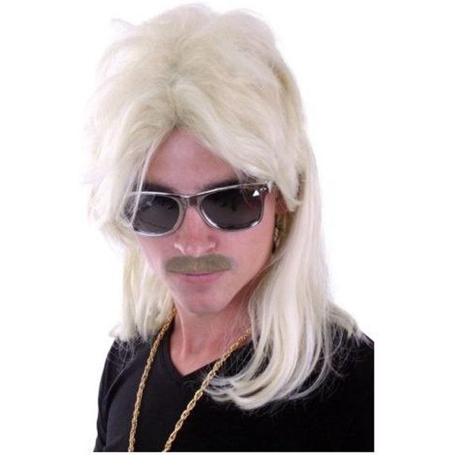 Blonde herenpruik in klassiek Maaskantje-stijl met matje, perfect voor verkleedpartijen en foute avonden. Bekend van de herkenbare filmlook. Lees meer.