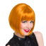 Oranje boblijnpruik van hoge kwaliteit met een natuurlijke uitstraling en rechte pony. Perfect voor feest, verkleedpartijen of thema-avonden. Lees meer.
