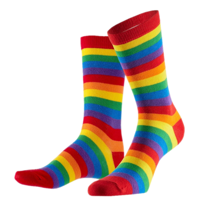 Gestreepte regenboogsokken voor volwassenen met schoenmaat 41/46. Lees meer.