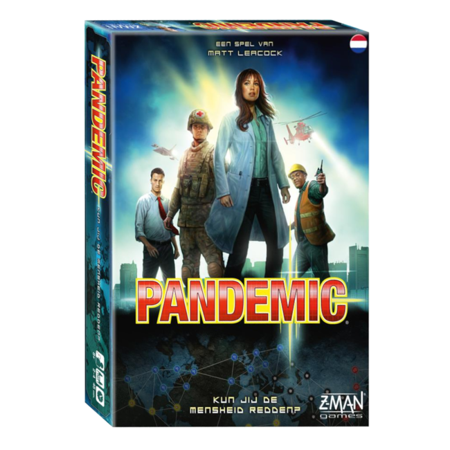 Pandemic is het spannende coöperatieve bordspel waarin jij samen met je team de wereld moet redden van vier levensgevaarlijke ziektes. Als leden van een elitegezondheidsteam reis je over de hele wereld om infecties in te dammen, onderzoek te doen en geneesmiddelen te ontwikkelen. Samenwerking is cruciaal, want alleen door slimme strategie en goed teamwork kun je een wereldwijde ramp voorkomen.