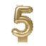 Geef de verjaardagstaart een stijlvolle uitstraling met dit gouden cijferkaarsje in de vorm van het getal 5. Perfect om een leeftijd of jaartal feestelijk uit te lichten.