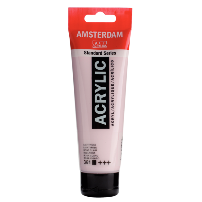 Met Amsterdam Acrylverf 361 Licht roze 120 ml werk je met een zachte, dekkende rozetint. De verf droogt snel, is geurloos, flexibel en blijft minimaal 100 jaar lichtecht.