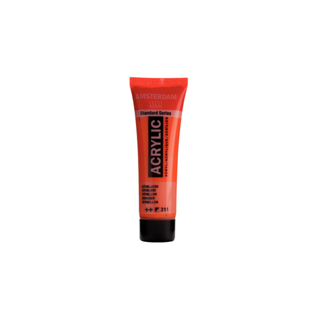 Met Amsterdam Acrylverf 311 Vermiljoen 120 ml schilder je met een levendige, warme oranjerode tint. De verf droogt snel, is geurloos, flexibel en blijft minimaal 100 jaar lichtecht.