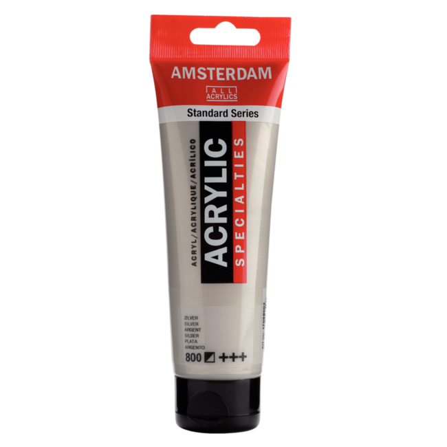 Met Amsterdam Acrylverf 800 Zilver 120 ml geef je je werk een stijlvolle metallic tint met een verfijnde zilverglans. De verf droogt snel, is geurloos, flexibel en blijft minimaal 100 jaar lichtecht.