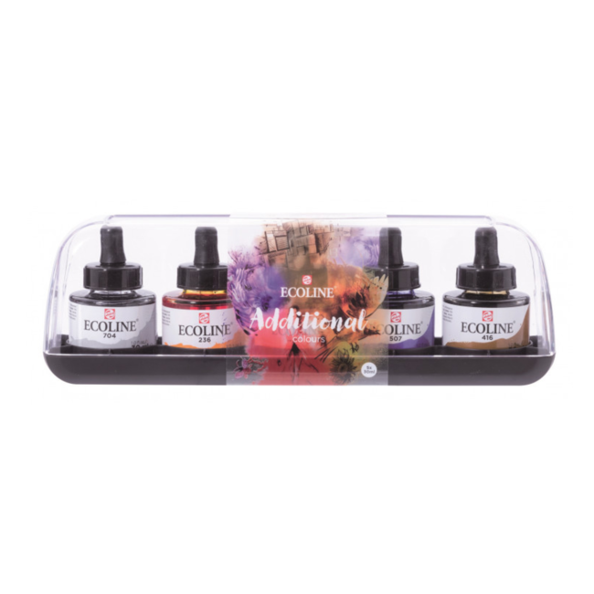 Deze Ecoline Additional Set van Talens bevat vijf prachtige vloeibare aquarelkleuren van 30 ml, ideaal voor creatieve toepassingen met penseel, pen of airbrush. De set is perfect voor wie zijn kleurenpalet wil uitbreiden.