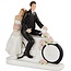 Vrolijk trouwbeeldje van een bruidspaar op de fiets, een originele taarttopper die zorgt voor een speelse en romantische uitstraling tijdens de bruiloft.