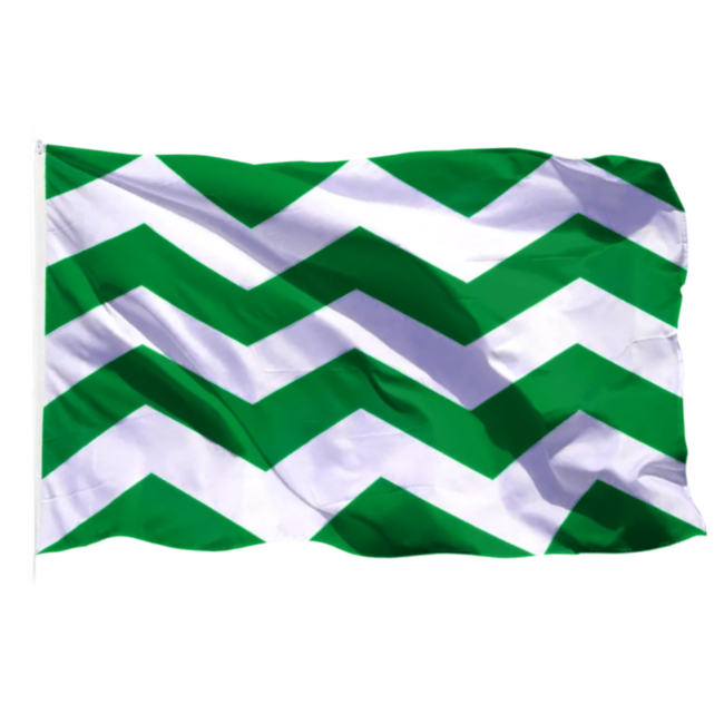 Ontwerp met groen-witte gekartelde banen, symbool voor kassen en het Westlandse wapen