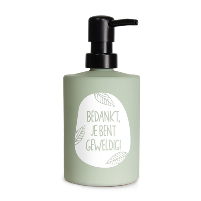 Een stijlvol Miko zeeppompje met de tekst “Bedankt, je bent geweldig!”. Een praktisch en hartverwarmend cadeau voor in de keuken, badkamer of het toilet.