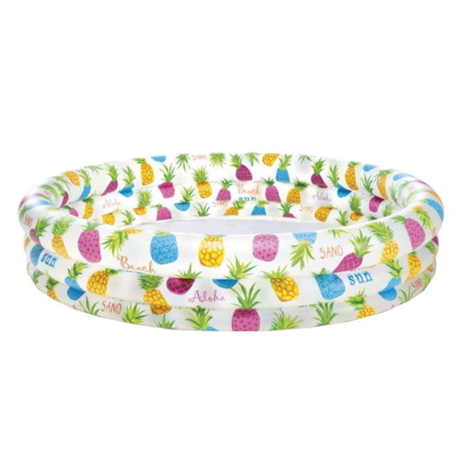 Het bad is eenvoudig op te zetten en snel gevuld, zodat kinderen direct kunnen genieten van waterpret. Dankzij het speelse ontwerp met ananassen brengt dit zwembad extra zomergevoel met zich mee, perfect voor warme dagen in de tuin of op vakantie.